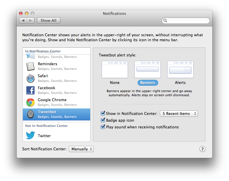 อยู่ที่ System Preferences -> Notifications แล้วเลือกปรับเอาตามใจชอบเลยครับ เมนูต่าง ๆ จะคล้าย iOS
