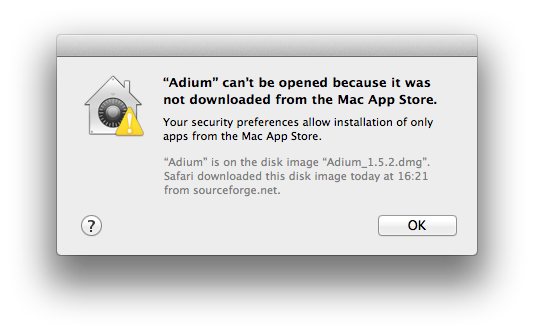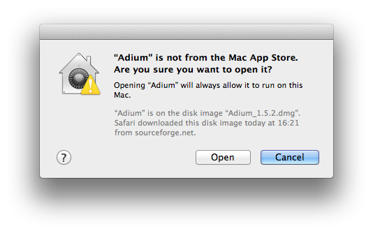 โปรแกรมหลายตัวเปิดไม่ได้บน Mountain Lion และพบหน้าต่างแจ้งเตือนแบบนี้ ทำเอาหลายคนงง? ซึ่งเป็นระบบ Gatekeeper ครับ เพื่อป้องกันโปรแกรมไม่พึงประสงค์เปิดอัตโนมัติบนเครื่องเรา วิธีแก้ ตอนจะเปิดโปรแกรมครั้งแรก ให้คลิกขวาที่ตัวโปรแกรม -> Open แทนการดับเบิ้ลคลิก จะเจอหน้าต่างถามแบบนี้