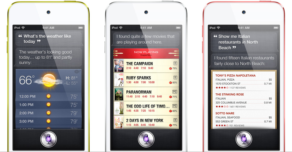 แน่นอนว่า Siri ที่เปิดตัวพร้อมกับ iPhone 4S จะมาลงเป็นผู้ช่วยประจำการบน iPod touch ด้วย ซึ่งฟีเจอร์ต่าง ๆ ก็มาครบ