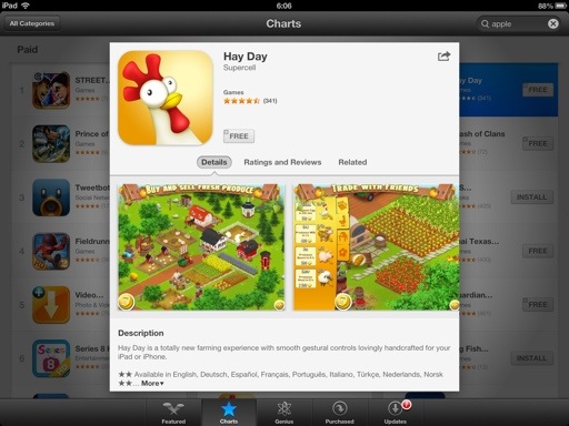 สำหรับหน้าตาบน iPad นั้นจะดูไฉไลเลยทีเดียว มอง ๆ ไว้เถอะครับ แล้วก็ดูให้ดี เพราะหน้าตา Store แบบนี้ แบบนี้เป๊ะ ๆ จะไปอยู่บน iTunes 11 เวอร์ชันปรับปรุงส่วนติดต่อผู้ใช้ใหม่ทั้งหมด ซึ่งจะเปลี่ยนไปใช้ Store หน้าตาแบบเดียวกับ iPad จริง ๆ
