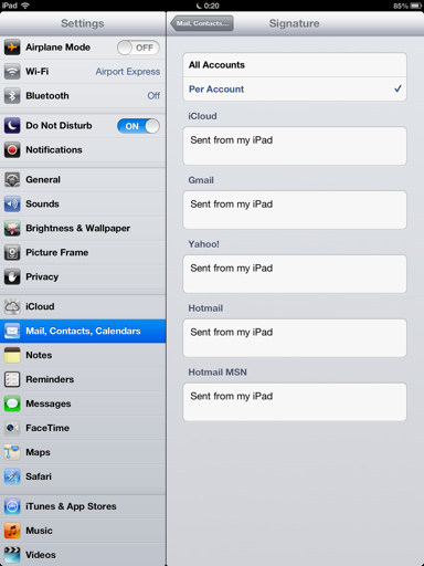 นอกจากนั้น ใครที่มีเมลล์หลายบัญชีจัด และอยากใช้ลายเซ็นต์ต่าง ๆ กัน Apple จัดให้ โดยสามารถตั้งค่าได้ว่าจะใช้ลายเซ็นต์เดียวทุกบัญชีหรือจะใช้บัญชีละ 1 ลายเซ็นต์ก็ย่อมได้
