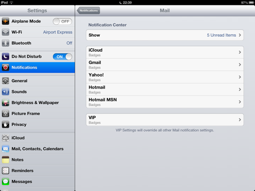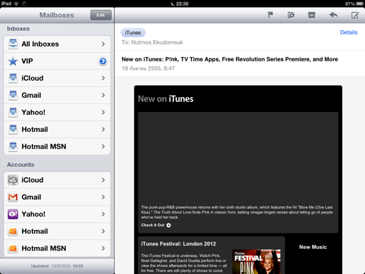 Mail ยังมีระบบแยกการแจ้งเตือน Mail แต่ละบัญชีออกจากกัน และ VIP Mail จะแยกเป็นพิเศษอีกเมนูเลยทีเดียว