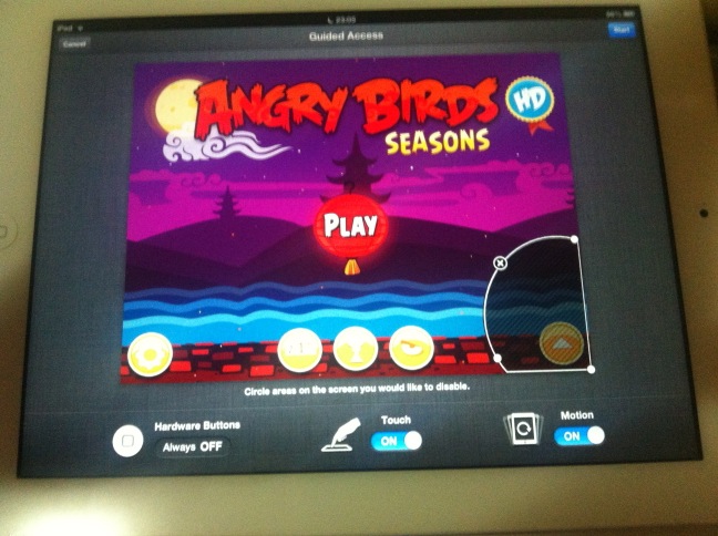 (เนื่องจาก Guided Access ทำให้ Capture หน้าจอไม่ได้ ต้องเอากล้อง iPhone 4 ถ่าย เลย…)