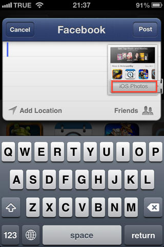 หลังจากการรวม Twitter เกิดขึ้นบน iOS แล้ว ไหนเลยจะไม่มี Facebook ตามมาด้วย (แต่ Android มีมานานแล้ว เนื่องจากเป็นระบบเปิด) ดังนั้น Apple จัดให้ ใส่ Facebook ทุกมุม มาให้คุณ ๆ ได้อัพ Status, ภาพ ฯลฯ ได้อย่างง่ายดาย