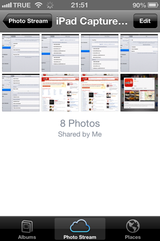นอกจาก Apple จะรวม Facebook, Twitter เข้ากับ iOS แล้ว ยังสร้าง Solution การแชร์ภาพอีก คือ Shared Photo Stream โดยจะแชร์รูปขึ้นไปบน Photo Stream ของ iCloud และสามารถโพสต์ลิ้งก์ไปยัง Facebook, Twitter ได้เช่นเดียวกัน พร้อมทั้งอนุญาตให้ใครมาชมภาพของเราก็ได้