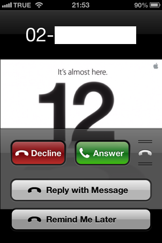 ตอนที่สายเข้า (หรือสาย FaceTime ก็ตาม) จะมีไอคอนโทรศัพท์ (ถ้า FaceTime จะเป็นไอคอนรูปวีดีโอขีดฆ่า) เป็นการส่ง Message กลับไปยังเบอร์นั้น หรือจะให้เตือนให้โทรกลับทีหลังก็ย่อมได้