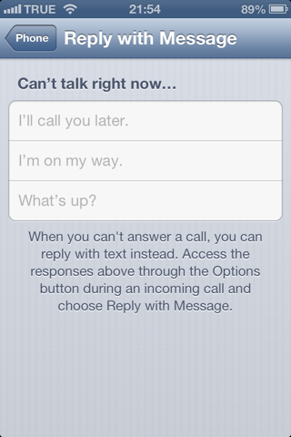 แต่สามารถแก้ไขได้ โดยไปที่ Settings ->; Phone ->; Reply with Message