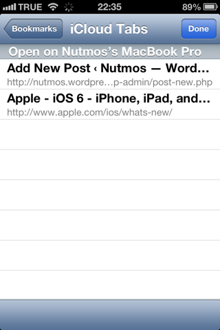 iCloud Tabs ดู Safari Tab ที่เปิดค้างไว้ใน Safari บน Mac รัน OS X Mountain Lion, iPhone, iPad, iPod touch ที่เป็น iOS 6 เครื่องอื่น ๆ ใน iCloud Account เดียวกัน มาเปิดที่เครื่องนี้ได้