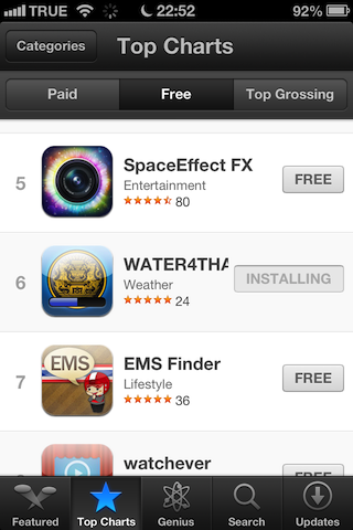 เมื่อโหลดแอพใดแล้ว จะไม่ออกจาก App Store เพื่อไปยังแอพนั้น ๆ แต่จะแสดงสถานะดาวน์โหลดใน App Store แทน และเมื่อมีแอพนั้นบนเครื่อง จะขึ้นเมนู Open แทนที่จะขึ้น Installed เหมือน iOS ก่อน ๆ