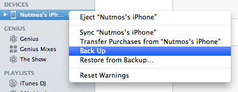 โดยปกติ หากคุณเปิด Backup ในเมนู iCloud ไว้ ข้อมูลจะต้องถูก Backup ขึ้น Cloud อยู่แล้ว แต่เมื่อไม่ได้เปิด หรืออยาก Backup บนคอมจะชัวร์กว่า เนื่องจากต่อให้ระบบของ Apple จะดีแค่ไหนก็ตาม แต่ก็ไม่แน่เสมอไปว่าอาจแจ๊คพอตแตกที่คุณ อาจเกิดอาการแฮ้งก์ตอนอัพเดทได้ (ผมเป็นมาแล้ว) คุณคงไม่อยากนึกสภาพว่าต้องมานั่งเมมชื่อใหม่หมด และรูปภาพแห่งความทรงจำรวมทั้งเกม Angry Birds ที่เล่นค้างไว้ หายเกลี้ยง ต้องมาเริ่มเล่นใหม่ตั้งแต่ด่านแรก