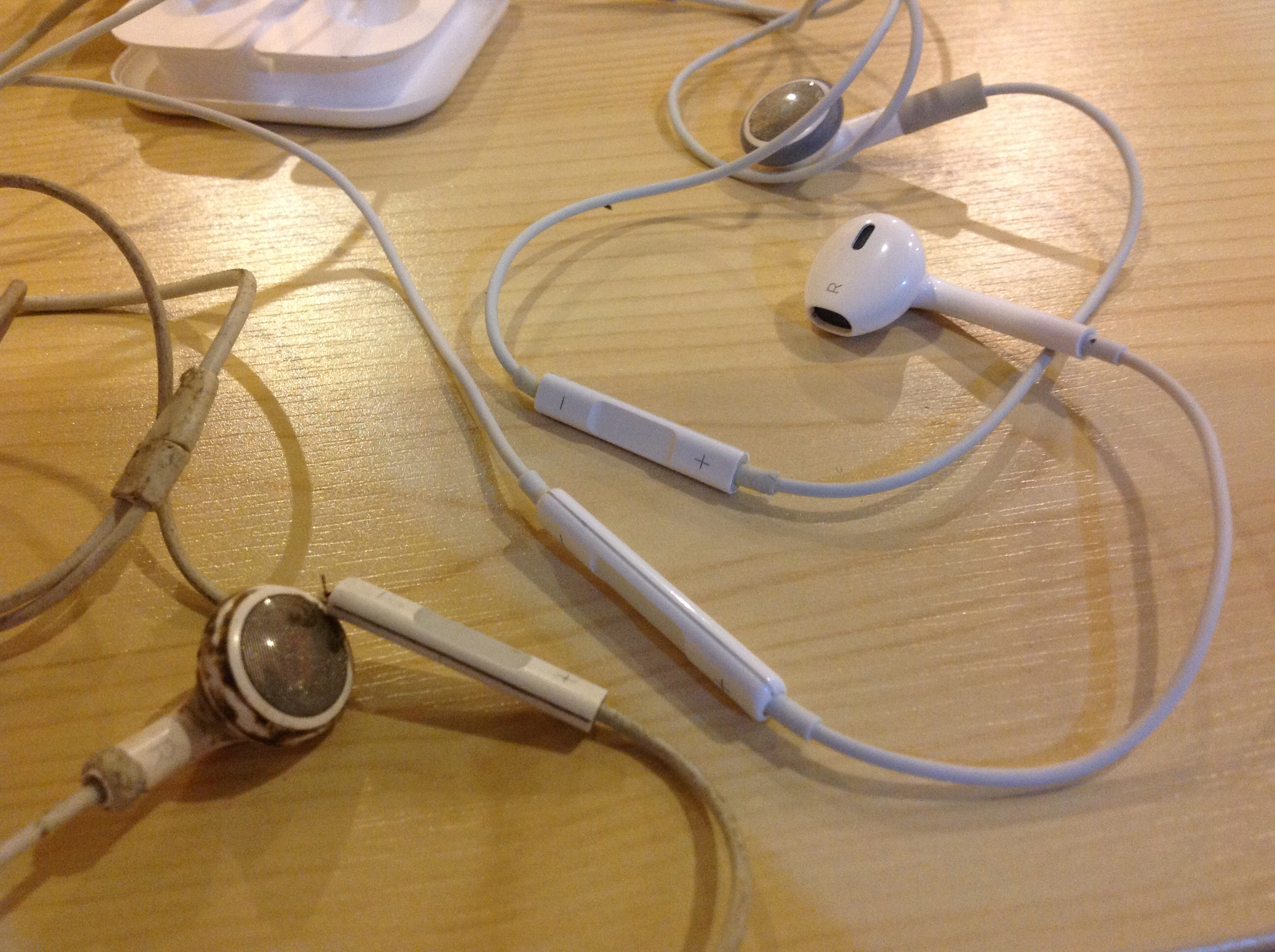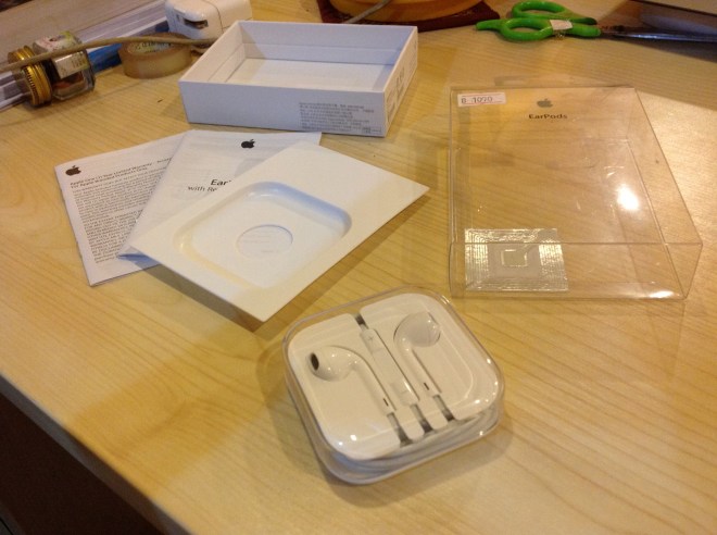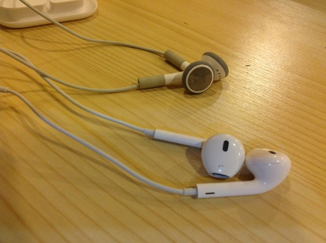 EarPods จะไม่มีขอบยางห้อยด้านล่างเหมือน Earphone แล้ว เพราะหากหูฟังอายุมากแล้ว ขอบยางด้านล่างก็จะเป็นอย่างที่เห็น คือขาดออกไปเลย (หูฟังที่ใหม่กว่า คือหูฟัง iPhone 4S ผมซื้อ iPhone 4 ได้หูฟังแบบอื่นมา แต่เสีย จึงส่งเคลมได้หูฟังเช่นนี้ ส่วนหูฟังเก่าและพังแล้ว เป็นหูฟังซื้อแยกตอนปี 2552)