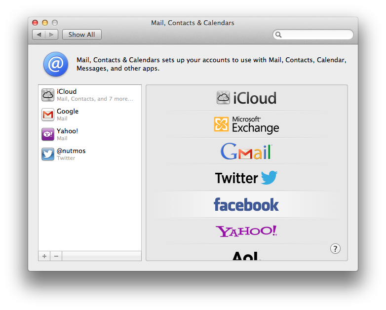 ก่อนอื่น ไปที่ System Preferences ->; Mail, Contacts & Calendars