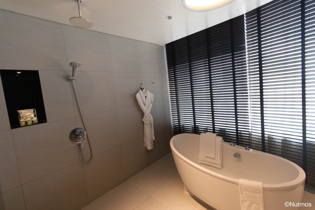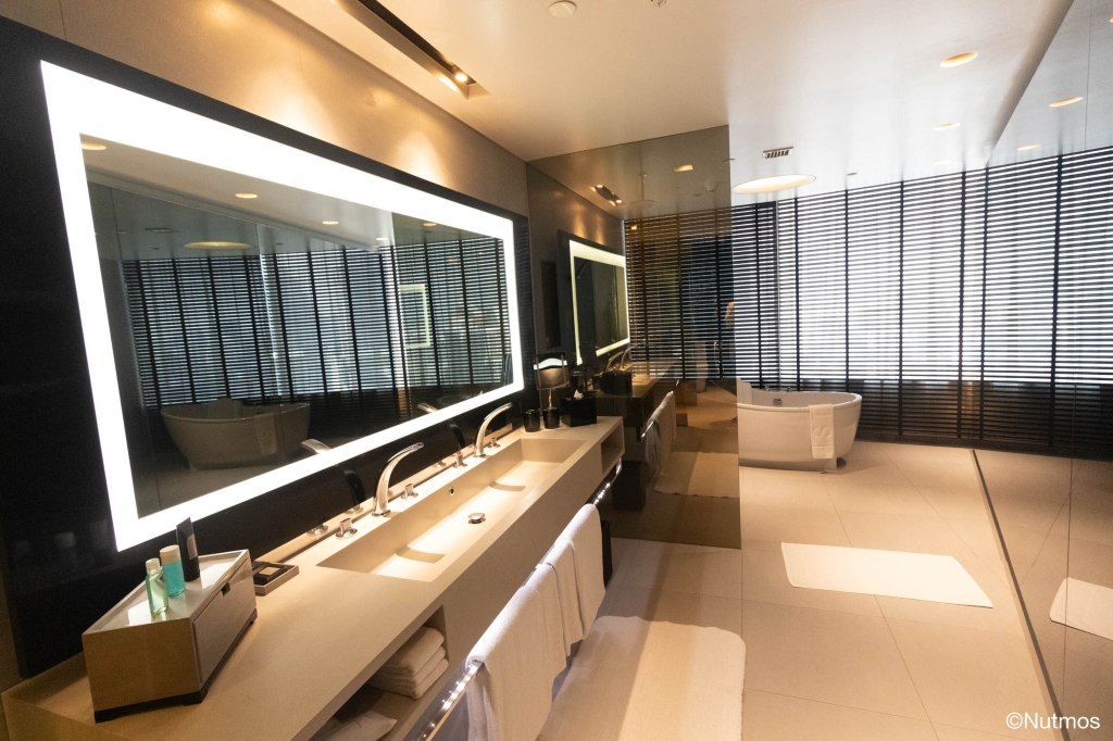 ต่อด้วยห้องน้ำมาพร้อมอ่างอาบน้ำขนาดใหญ่ เปิดมู่ลี่ชมวิวเมืองได้ และอ่างล้างหน้าก็ใหญ่มาก พร้อมกับ Amenities ครบชุด มีสิ่งเดียวที่ผมไม่โอเคคือแปรงสีฟัน เพราะตั้งแต่ไปโรงแรม 5 ดาวมาหลายที่ บอกได้เลยว่าที่นี่แปรงสีฟันแข็งที่สุดครับ – -“