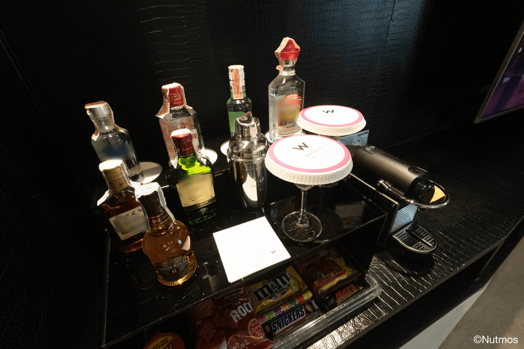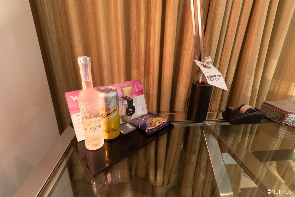 ในส่วนของมินิบาร์ของห้อง W ถือว่าไม่เลว และที่สำคัญคือราคาถูกมากเมื่อเทียบกับโรงแรมอื่น ๆ ที่ผมเคยไปมา จำพวก Soft Drink กระป๋องละ 20 บาท หรือเหล้าก็ยังถือว่าราคาไม่แพงนัก