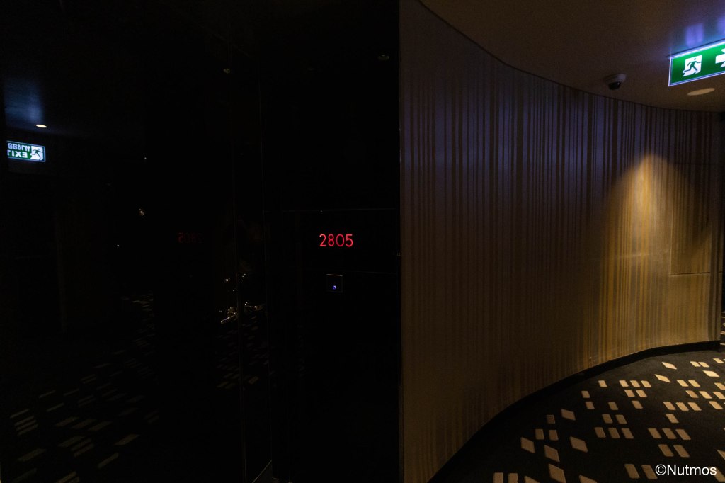 ห้องพักที่ได้จะอยู่ชั้น 28 เลขห้อง 2805 ประเภทห้อง Studio Suite เป็นห้องอยู่เกือบมุมตึก โดยลิฟท์ที่นี่ต้องแตะบัตรขึ้นและแตะบัตรเพื่อเปิดประตูเข้าห้องด้วย