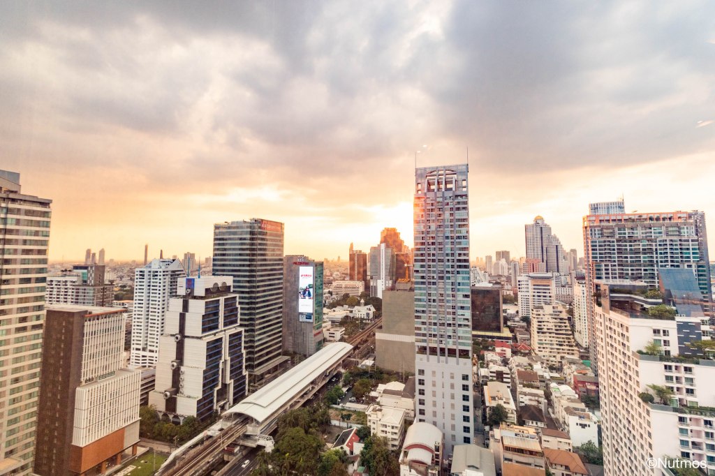 มาสำรวจห้องพักกันดีกว่า ห้องที่ได้ถือว่าใหญ่มาก ๆ มุมที่หันไปเป็นมุมถนนสาทร เห็นสถานีศึกษาวิทยาที่กำลังสร้างอยู่ เตียงเป็น King Size พร้อมกับโซฟา และโต๊ะทำงานขนาดใหญ่