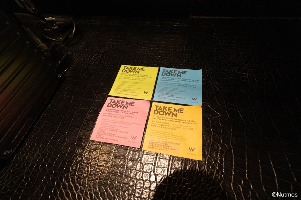 อีกกิมมิคที่ W จะวางไว้ให้คือคูปองสำหรับใช้งานกับร้านอาหารและสปา สามารถหยิบจากห้องลงไปใช้งานได้เลยครับ