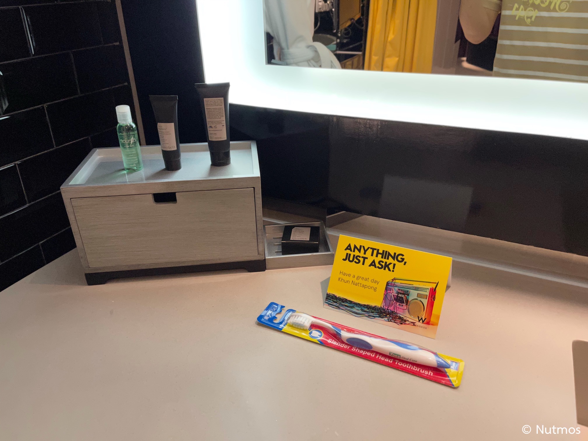 จุดที่ชอบคือรอบนี้ทางโรงแรมการพิมพ์ใบต้อนรับในชื่อเราด้วยฟอนต์รูปแบบของ W และคราวที่แล้วหลังจากคอมเมนท์เรื่องแปรงสีฟันส่งไปใน survey ที่สอบถามมาทางอีเมล ผลลัพธ์ที่ได้ก็คือจัดมาให้แบบเฉพาะ ตรงนี้คือให้คะแนนด้านความใส่ใจต่อ feedback เต็มเลยจริง ๆ เลิฟ ❤