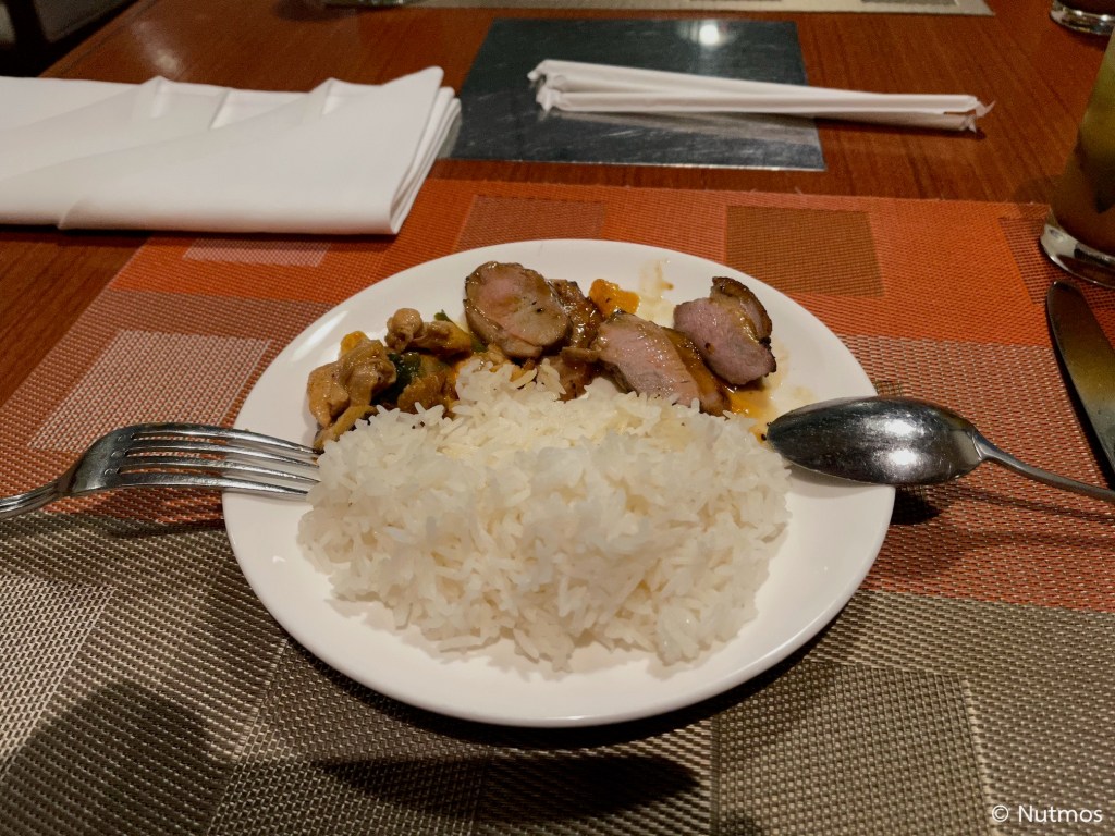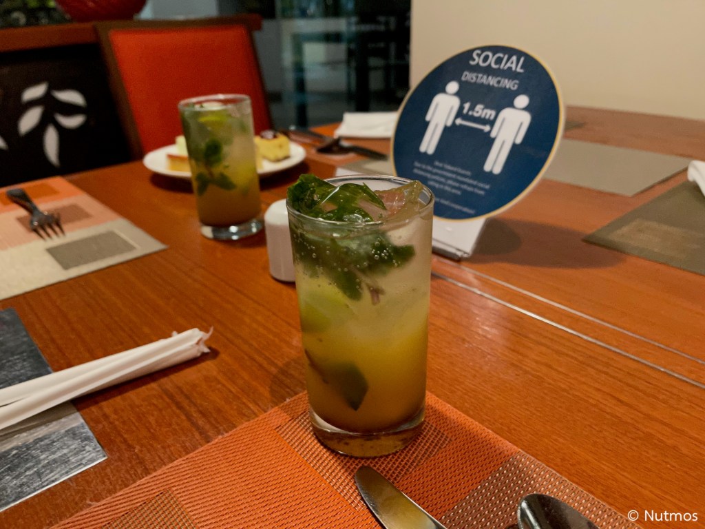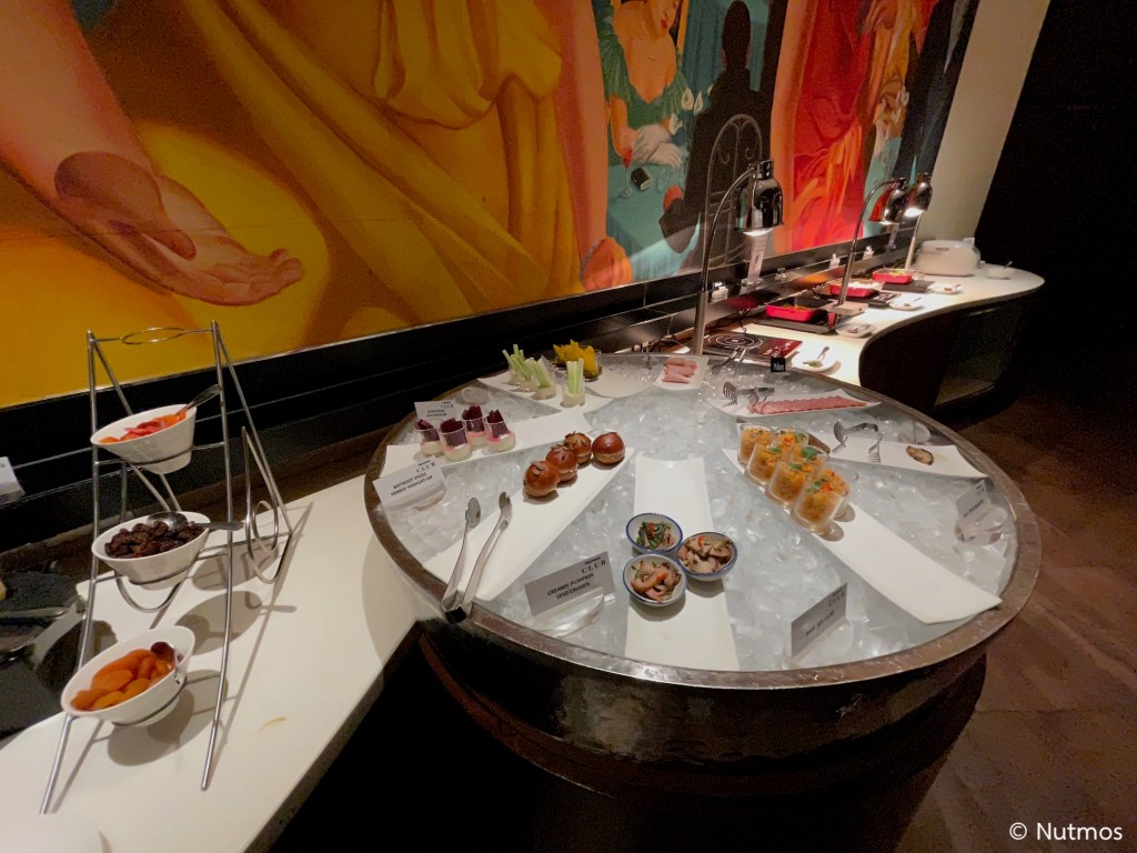 ช่วงนี้เนื่องจากคลับของ Royal Orchid Sheraton ปิด สิทธิประโยชน์คลับเลยย้ายมาที่ห้องอาหาร Giorgio’s แทน และเนื่องจากตอนนี้ยังเสิร์ฟแอลกอฮอล์ไม่ได้ ทางโรงแรมจึงชดเชยด้วยการจัดไลน์บุฟเฟ่ต์อาหารขนาดย่อม ๆ ให้ ในความคิดผมคือไลน์บุฟเฟ่ต์แบบนี้อยู่ในระดับดีเลยทีเดียว มีให้เลือกหลากหลายระดับหนึ่ง ส่วนความอร่อยผมให้อยู่ในเกณฑ์มาตรฐาน เครื่องดื่มมีให้เลือกทั้งซอฟต์ดริ้งค์และมอคเทล