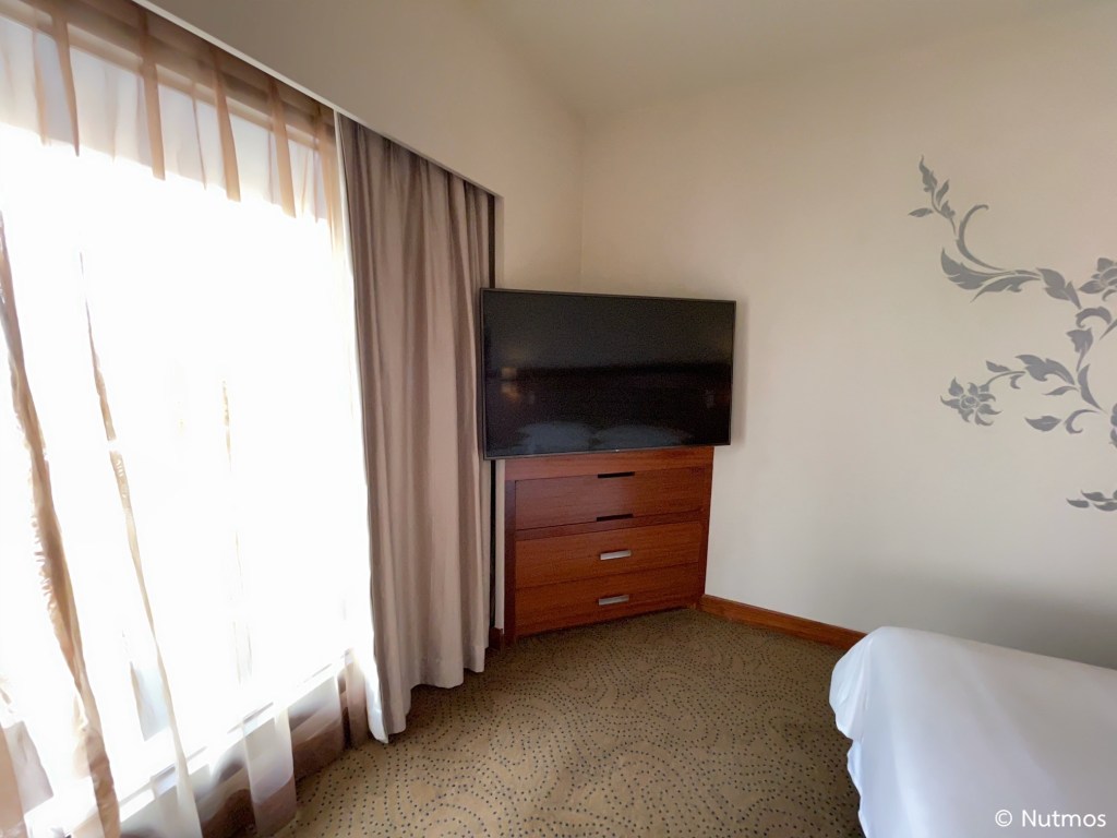 ห้องนอนจะมีหน้าต่าง 2 บาน บานที่มีเก้าอี้จะวิวคล้ายกับห้องนั่งเล่น ส่วนอีกบานจะวิวมุมใกล้ของไอคอนสยามและโรงแรม Millenium Hilton ในห้องยังมีทีวีอีก 1 เครื่อง และเก้าอี้เอาไว้นั่งชมวิว ซึ่งเก้าอี้นี้นั่งสบายมาก