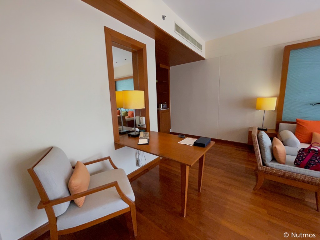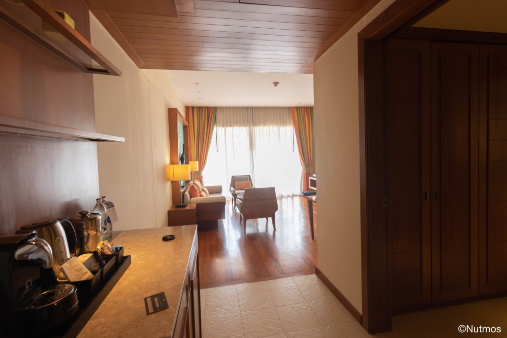 ห้องประเภทนี้จะมีห้องแต่งตัว, ห้องน้ำ, ห้องนอน และห้องนั่งเล่นแยกกันชัดเจน เปิดเข้ามาจะพบกับซุ้ม Mini Bar มีชากาแฟ โดยกาแฟที่นี่เป็น Boncafé และชาเป็น Dilmah ด้านขวาจะเป็นห้องแต่งตัว มีตู้เสื้อผ้าเป็นห้อง มุมห้องนั่งเล่นก็มีโซฟาและทีวีพร้อมกับเครื่องเล่นซีดีวางให้ใช้งานเรียบร้อย ซึ่งเครื่องเล่นซีดีใช้ยี่ห้อ Bose และมีมุมทำงานเล็ก ๆ ให้ด้วย