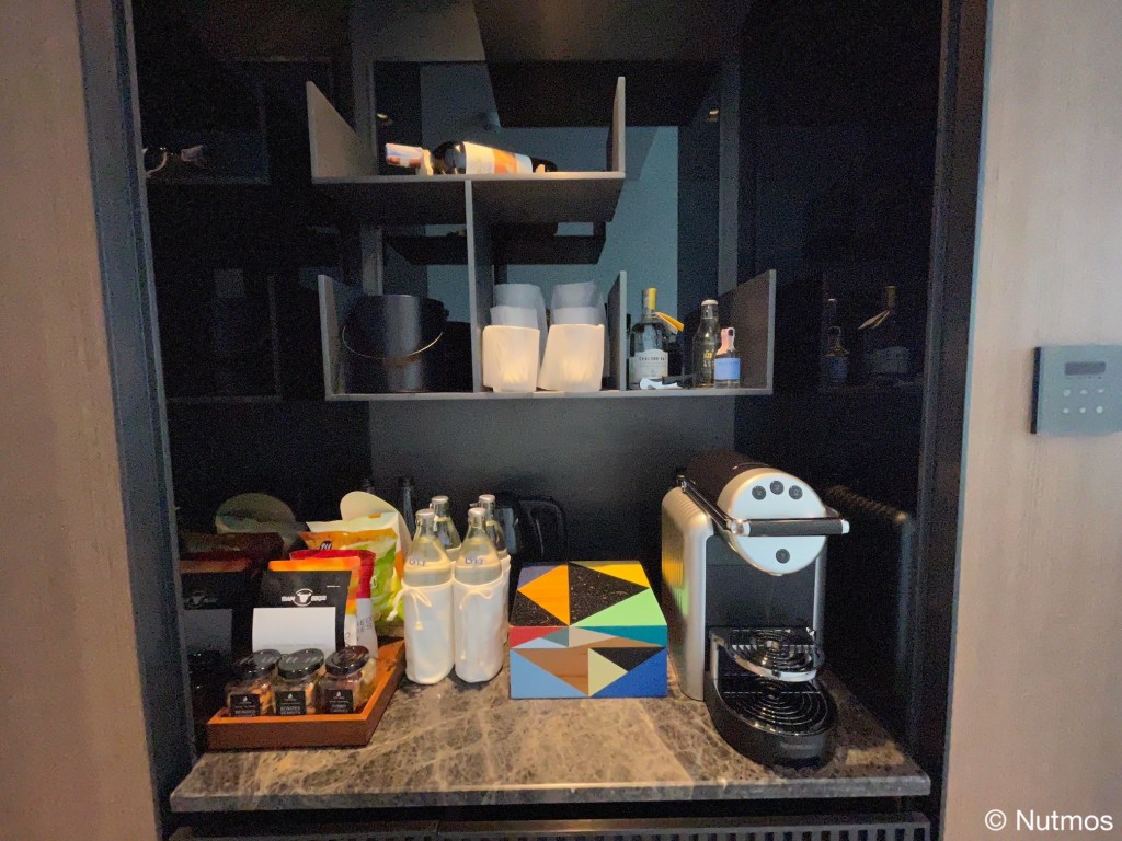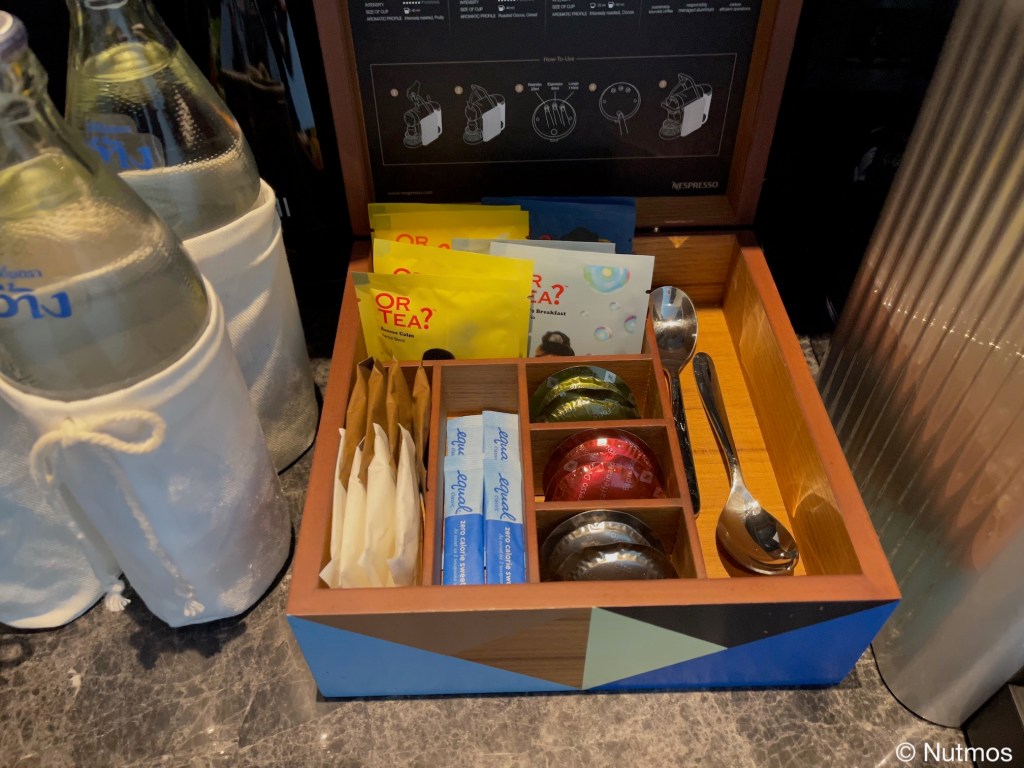 มินิบาร์ของโรงแรมจัดมาครบเซ็ท ชาเป็น OR TEA? (ยี่ห้อนี้ผมไม่เคยเห็นที่ไหนใช้เลย แต่รสชาติถือว่าใช้ได้) ส่วนกาแฟเป็น Nespresso แคปซูลเฉพาะที่บางโรงแรมชอบใช้ (แคปซูลแบบนี้ไม่มีขายให้ Nespresso ตามบ้าน)