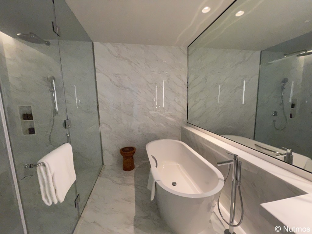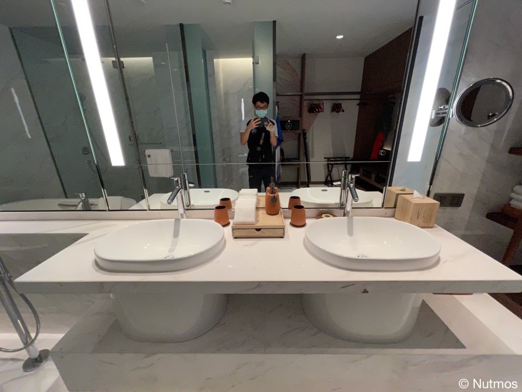 ห้องน้ำที่นี่ก็ถือว่ากว้างขวางและใหญ่โตมาก ๆ Amenities ที่นี่ใช้ของ HARNN The Maa-lai Collection (เข้าใจว่าผลิตให้ที่นี่โดยเฉพาะ) โดยรวมโซนแต่งตัวไว้ด้านหน้าห้องน้ำ