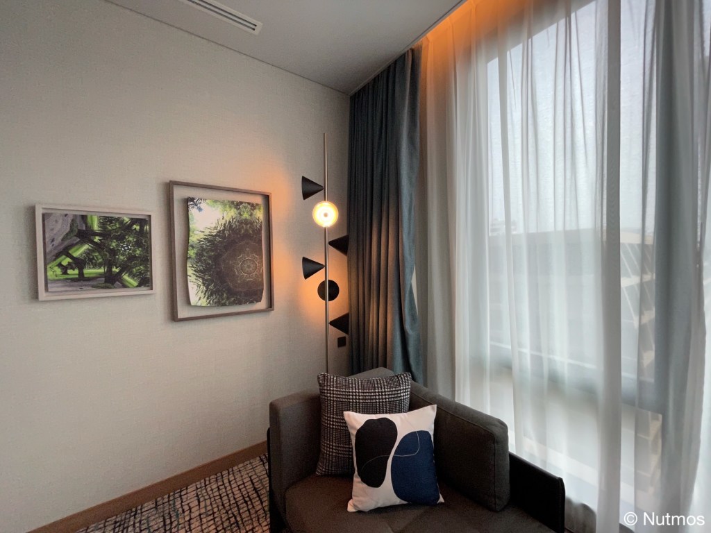 ข้าวของเครื่องใช้ที่นี่ก็ใหม่ มีลำโพง Bluetooth ให้ใช้งาน และโทรศัพท์แบบไร้สาย มีมุมโซฟาเล็ก ๆ ให้นั่งพักผ่อนหย่อนใจ ทีวีพร้อมระบบความบันเทิงเต็มรูปแบบ (จุดที่ชอบของทีวีที่นี่คือสามารถเปิดดูข้อมูลบิลทุกรายการในโรงแรมได้เลย) และระบบไฟอัตโนมัติที่ใช้งานง่าย