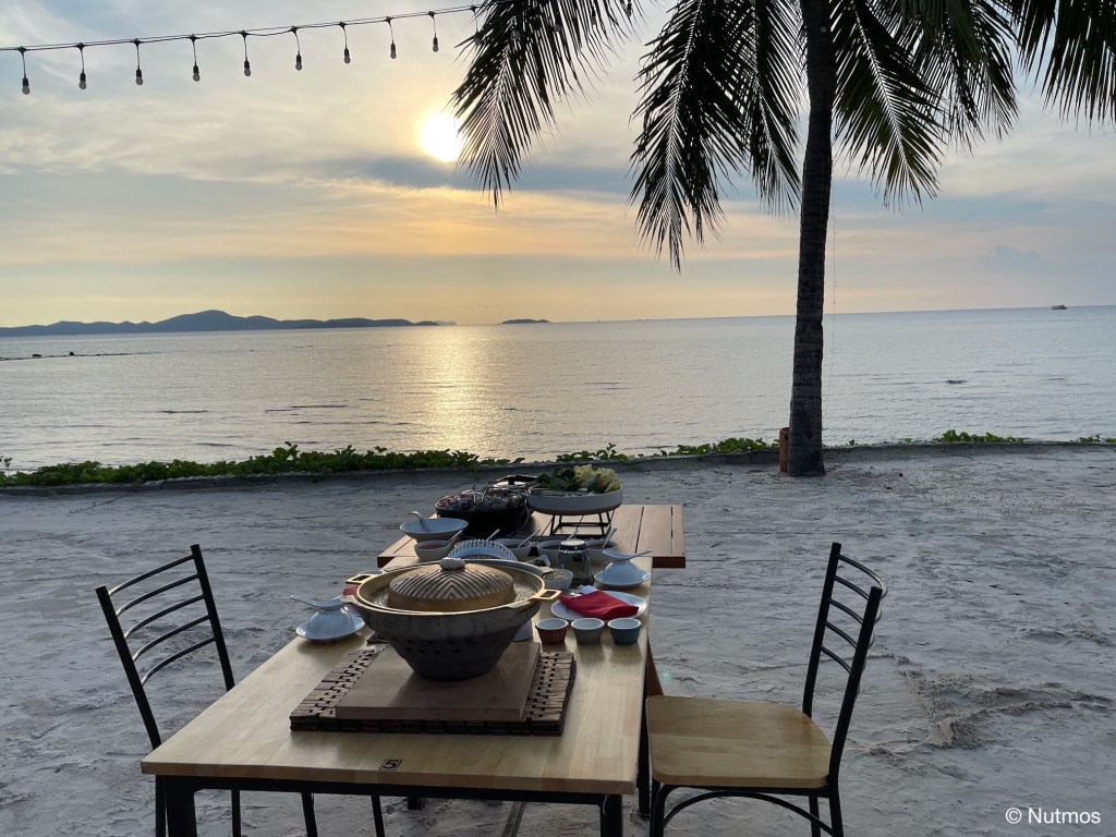 ช่วงที่ผมไป ที่รีสอร์ทจัดหมูกระทะบนหาดให้ด้วย ทานหมูกระทะชมพระอาทิตย์ตกก็เป็นอีกฟีลหนึ่งที่ดีมาก