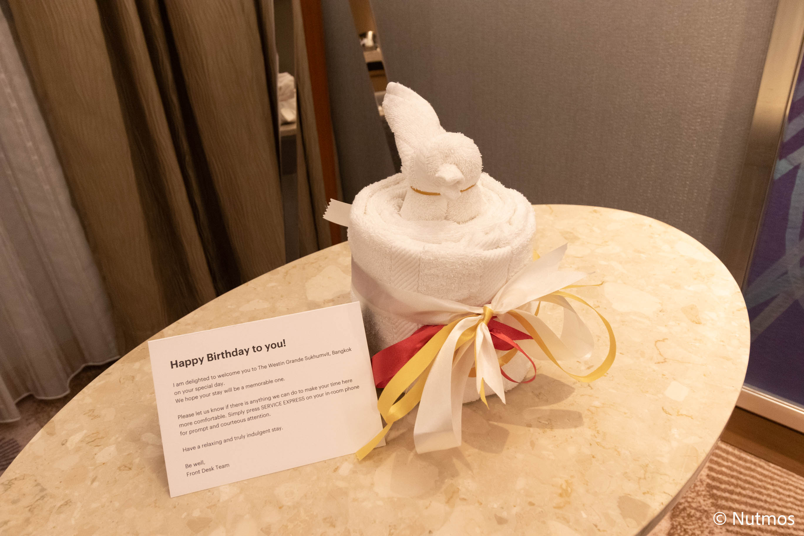 ช่วงวันที่ผมไปพักเป็นช่วงวันเกิดผมพอดี Front Office Team จึงจัดเซอร์ไพรส์เล็ก ๆ เป็นเค้กวันเกิดมาให้ด้วย และตกเย็นตอน turn down แม่บ้านก็มาพับนกให้ น่ารักดีครับ