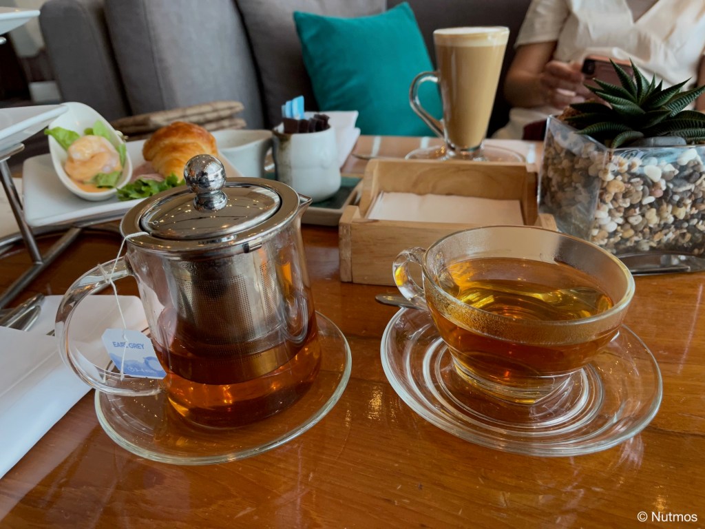 Afternoon Tea ที่นี่จัดมาเป็นเซ็ทเล็ก ๆ คือมีอาหารคาว, ขนมหวาน และผลไม้ให้ ให้บริการคนละ 1 ชุด ส่วนชาเป็นของ Ronnefeldt