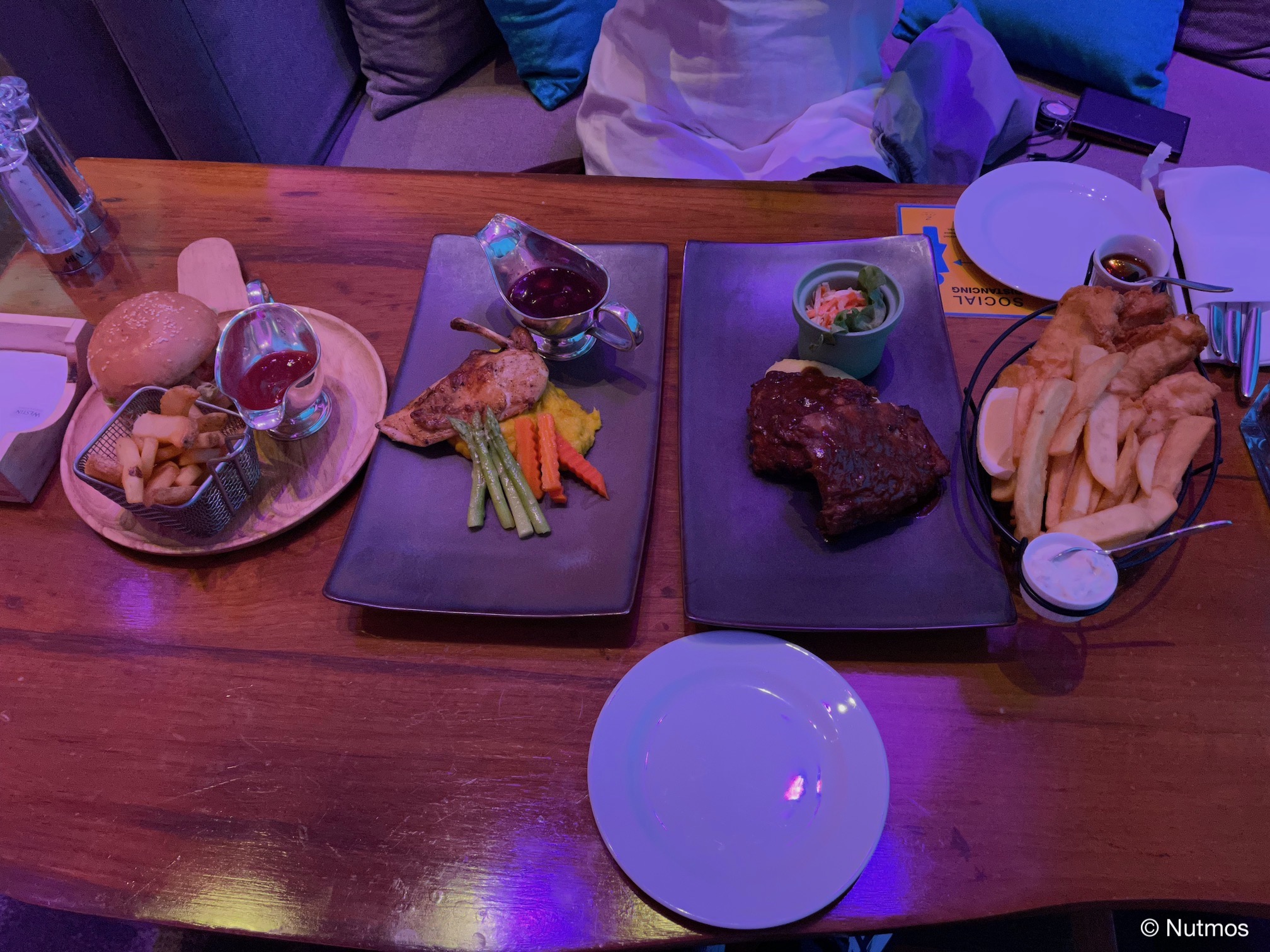 Evening Cocktail ที่นี่ จัดพร้อมอาหารเป็นจานที่สั่งได้คนละ 2 อย่างในเมนูเป็นแบบ full option (แน่นอนครับ กินจนตัวแตก ฮ่า ๆ) และเนื่องจากช่วงที่ผมไปยังไม่สามารถเสิร์ฟแอลกอฮอล์ได้ จึงมีมอคเทลมาทดแทนให้สั่งไม่อั้นจนถึง 2 ทุ่ม