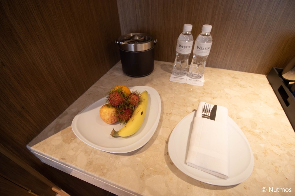 โซนห้องนั่งเล่น จะมีโซฟาและมีห้องน้ำจากห้องนอน พร้อมทั้งโซนกาแฟที่จัดไว้พร้อมกับผลไม้ต้อนรับ โดยกาแฟที่นี่มีให้เลือกทั้ง Nespresso และ Boncafe ส่วนชาใช้ Ronnefeldt